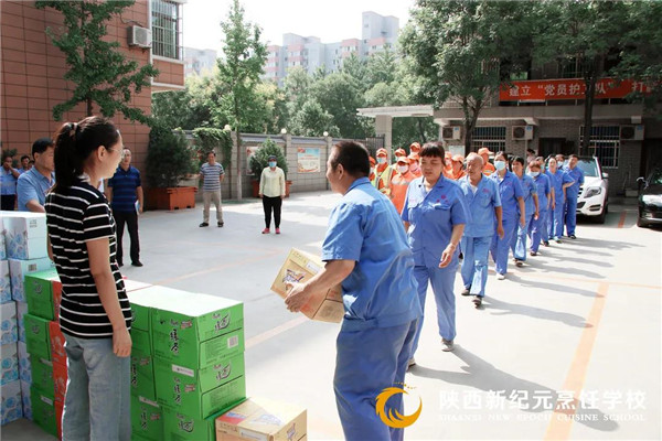 西安新纪元烹饪技工学校多年来热衷各项公益爱心传递事业,坚持开展“夏送清凉、冬送温暖”活动,不断向社会各界传递正能量,用实际行动彰显学校的社会责任感和大爱精神,把来自学校的关怀送到坚守一线岗位的工作人员心中,为学校各项事业发展凝聚奋进力量。 一份清凉,一份爱心。慰问现场,李校长亲自向坚守一线工作岗位的城市管理执法人员及环卫工作人员发放慰问物资,并嘱咐他们天气炎热要做好防暑降温工作,注意自身安全和健康;同时,李校长领导一行对城市管理执法人员及环卫工作人员勇于奉献、坚守岗位的精神给予充分肯定和赞扬,对他们为城市干净、维护市容稳定所付出的辛勤劳动表示衷心感谢。
