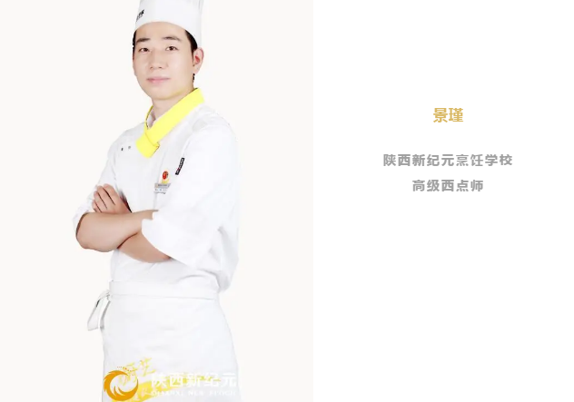 景瑾老师曾先后担任大型知名酒店西饼屋如喜来登、好利来、烘焙技术指导、技术总监和管理岗位等要职,并多次参加业内顶尖人才技能裱花、烘焙比赛,获得奖项无数,学子遍布全国各地。现任陕西新纪元烹饪学校高级西点师一职。