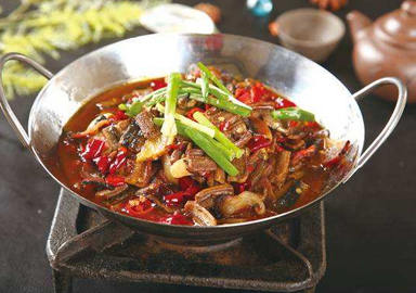 干锅菜是由四川绵阳流行开来的一种菜式。相对于火锅而得名。火锅汤汁很多,以适应涮烫各种原料;而干锅菜汤汁相对较少,一般作为菜品直接上桌食用,它最先是在湖南、湖北、江西一带流行,后被川厨引进并提升,形成了系列干锅菜肴,如干锅鸡杂、干锅鸡、干锅兔等。